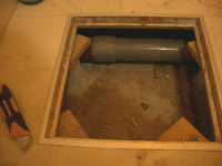 排水管を切ってみると上部に少し孔があるだけでした。業者にもよりますがこういう状況は多々あります。 |