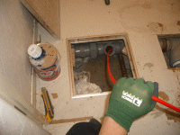 掃除口を取り付け高圧洗浄をパイプシャフトの集合管までとキッチン・浴室・洗濯機・洗面台排水管にキッチリと行いました。 |