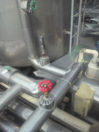 バルブ・温度計も交換し保温材を巻ステンレスのラッキングを施工しシーリングをして最後に環路のエアー抜きをし各階の点検を行い工事が完了しました。